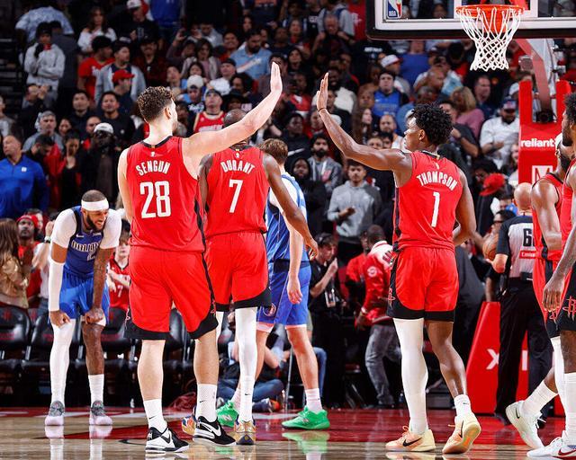 今天對陣獨行俠,即便是杜蘭特手感不佳,全場18投僅6中,三分線外更是8次出手只命中2球,但憑借申京和阿門-湯普森的發揮,他們依然有驚無險的拿捏了獨行俠。