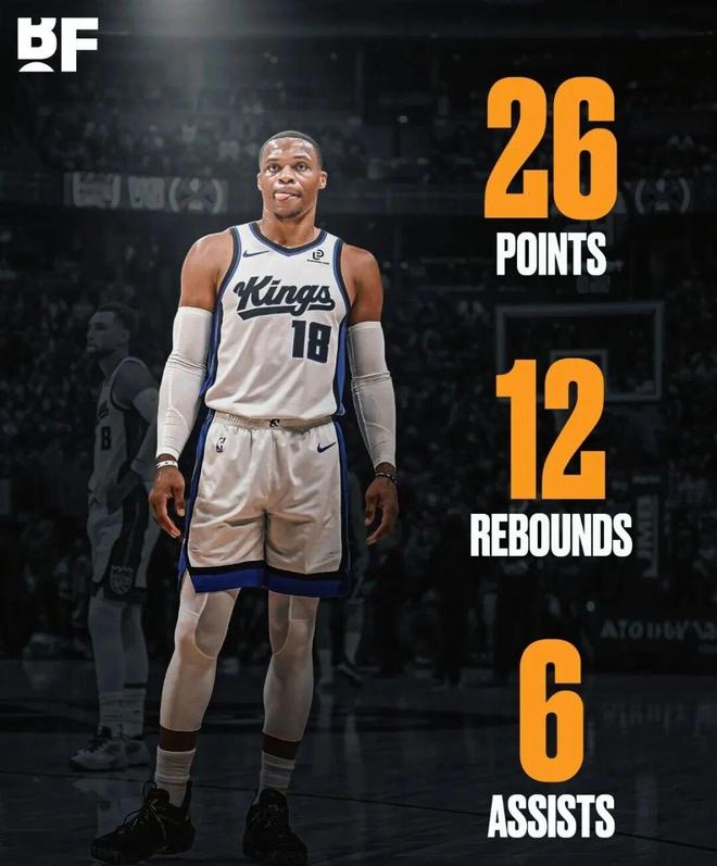 國王124-130不敵掘金,此役威少以首發(fā)大前鋒身份出戰(zhàn),面對(duì)老東家打出本賽季最強(qiáng)一戰(zhàn),約37分鐘時(shí)間里,投籃17中10,其中三分球6中3,罰球3中3砍下26分12板6助2斷炸裂數(shù)據(jù)。